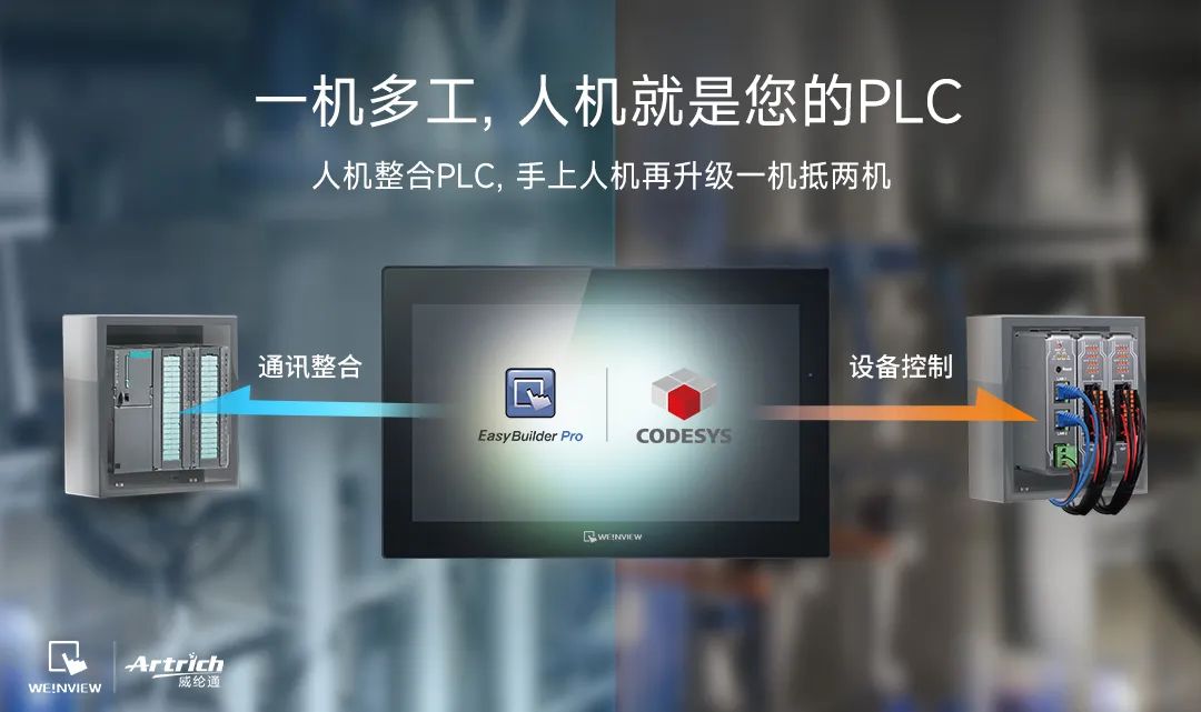 威綸通早在2017年就開始了與CODESYS在產品研發端的合作,目前主推的cMT X系列人機界面支持CODESYS可編程控制功能,可實現直接對遠程I/O進行通訊和控制,同時借助其本身的多元監控及IIoT能力,能夠滿足用戶低成本對設備進行人機監控+邏輯編程+運動控制+數據整合的應用場景,實現“一機多工,人機就是您的PLC