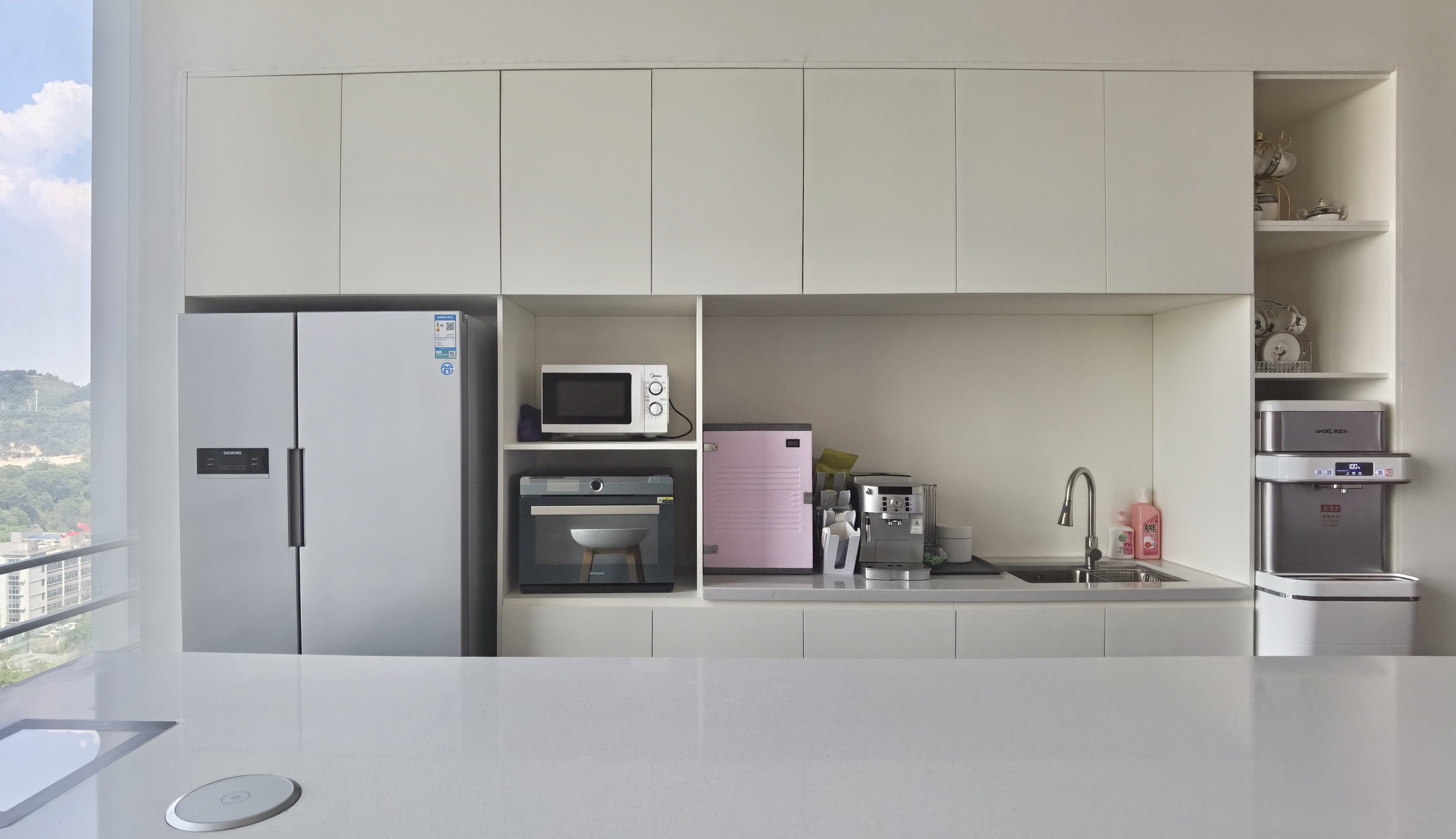 雙門冰箱,蒸箱,微波爐、全自動直飲水機的配備,營養午餐一鍵完成,關注伙伴們健康生活。