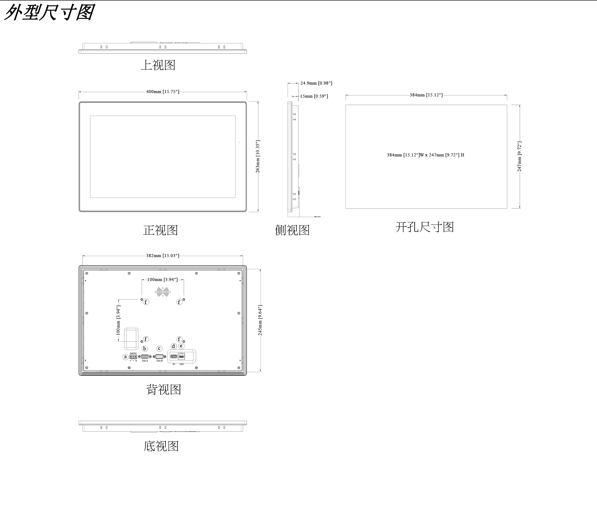 面板安裝,VESA 壁掛架 100 x 100 毫米
